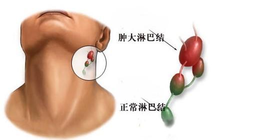 当病毒侵入人体发生感染时,淋巴结会肿大疼痛。像喉咙发炎时,会在下巴颏下摸到两个肿块,那就是淋巴结。炎症消失后淋巴肿块也会自然缩小。