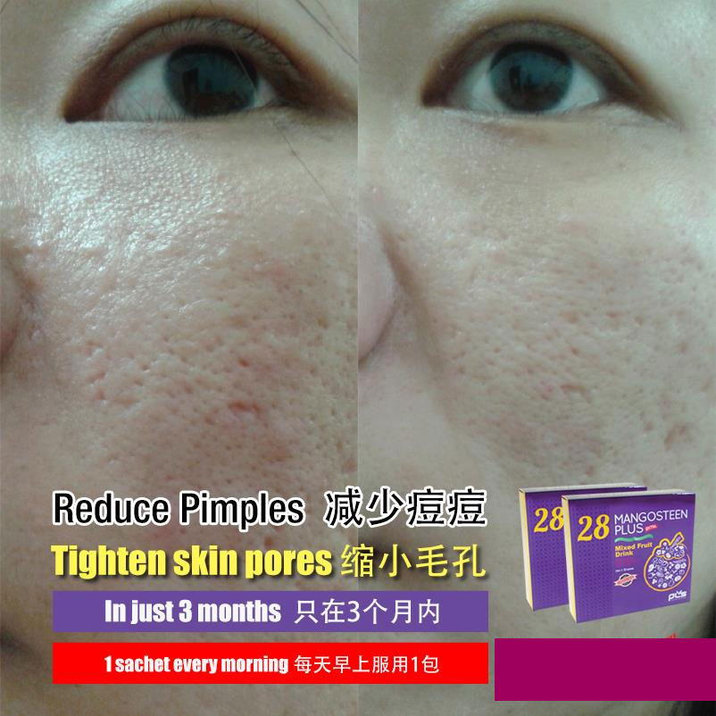 I have oily skin with large pores and tends to have acne on face and upper back for years. I tried various skin care products and acne treatment but to no avail.Now, the skin on my face is brightening with smaller pores. There are less acne on the back and face.'